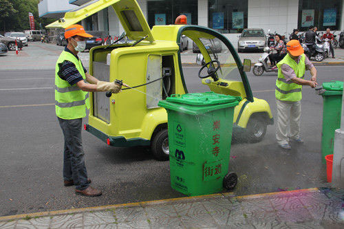 日前,區(qū)環(huán)衛(wèi)處引進(jìn)的高效垃圾桶清洗車正式“上崗”了,循環(huán)對(duì)全區(qū)56條主次干道、近1500個(gè)環(huán)衛(wèi)垃圾桶進(jìn)行清洗。