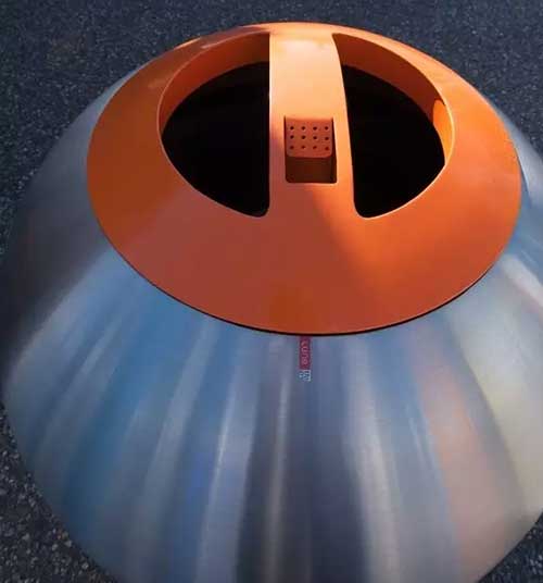 投放口在球身頂部,圓環(huán)形的口蓋顏色可以隨意搭配選擇,就目前所見,在德國柏林采用了醒目的橙色,在荷蘭皮爾默倫德采用了低調(diào)的黑色。蓋子上細(xì)心設(shè)計(jì)了一小塊凹槽作為公共煙灰缸專供行人在這里站立吸煙并放置掐滅了的煙蒂。